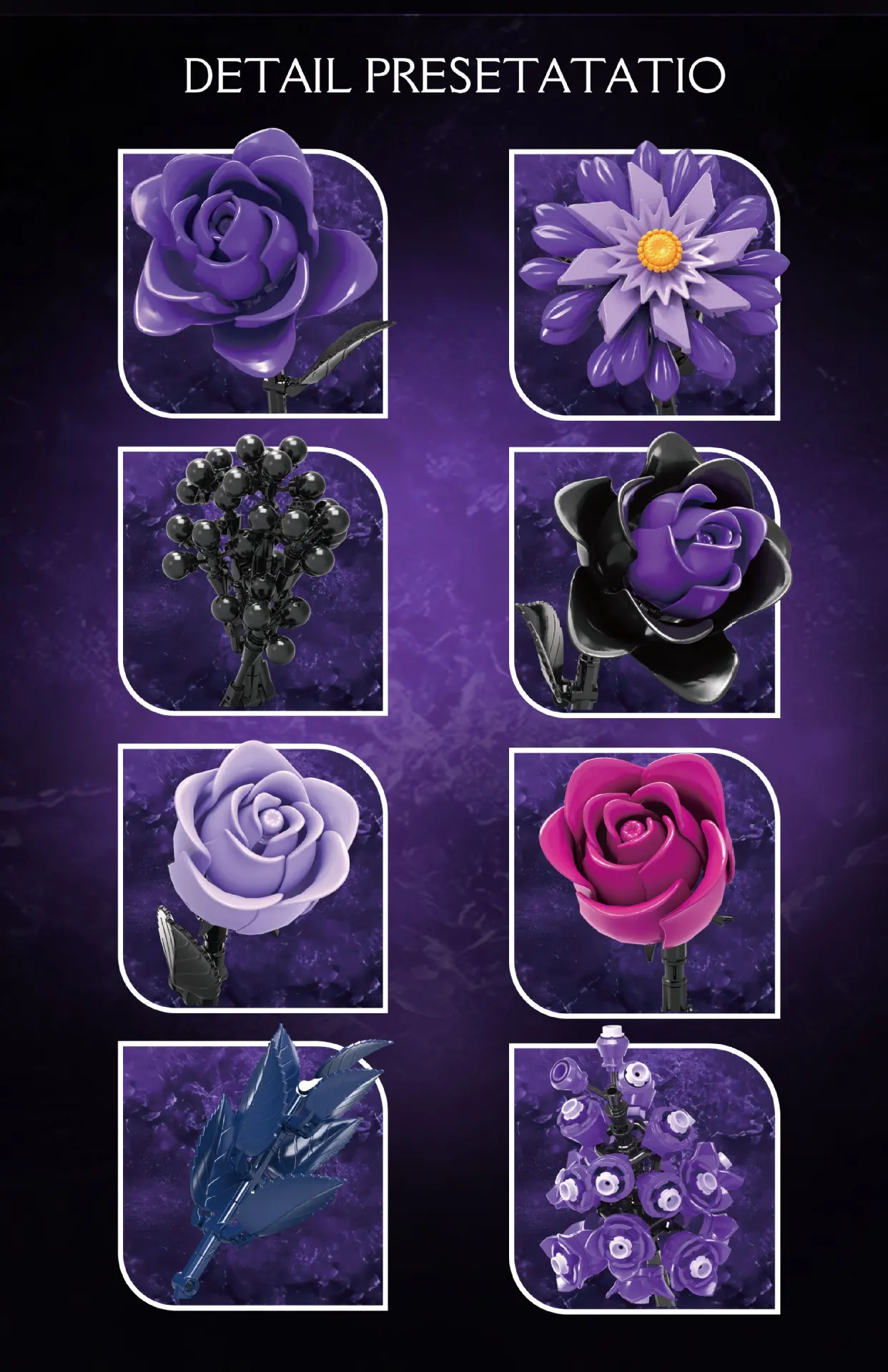 Designed for creativity, each stem in this purple flower botanical calendar offers flexible customization. Adjust the bloom height, along with every petal and leaf, to craft your unique floral arrangement. These innovative roses feature fully poseable petals, presenting three stunning styles: a delicate closed bud, an elegant half-bloom or a dazzling full blossom. Easily shape and arrange them to express your style - great for adding a personal touch to any space.